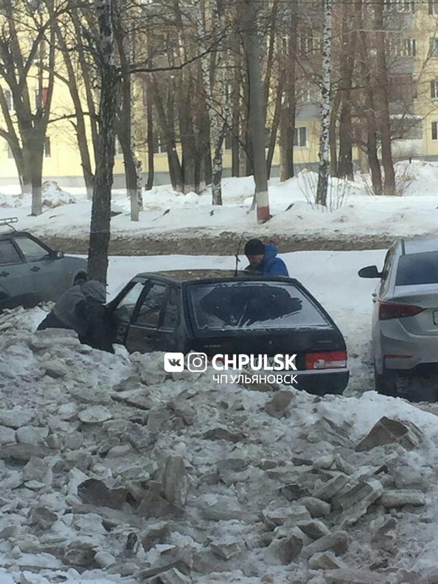 Водитель “скорой” не смог вытащить транспорт, но помогал другим водителем выталкивать стоящие рядом автомобили, которые также не могли выехать.
