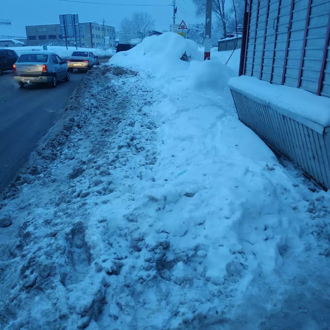 Продолжаем публиковать жалобы ульяновцев на некачественную уборку (или её отсутствие). На связи жительница Димитровграда, которая сообщает о кучах снега на том месте, где должен быть тротуар.