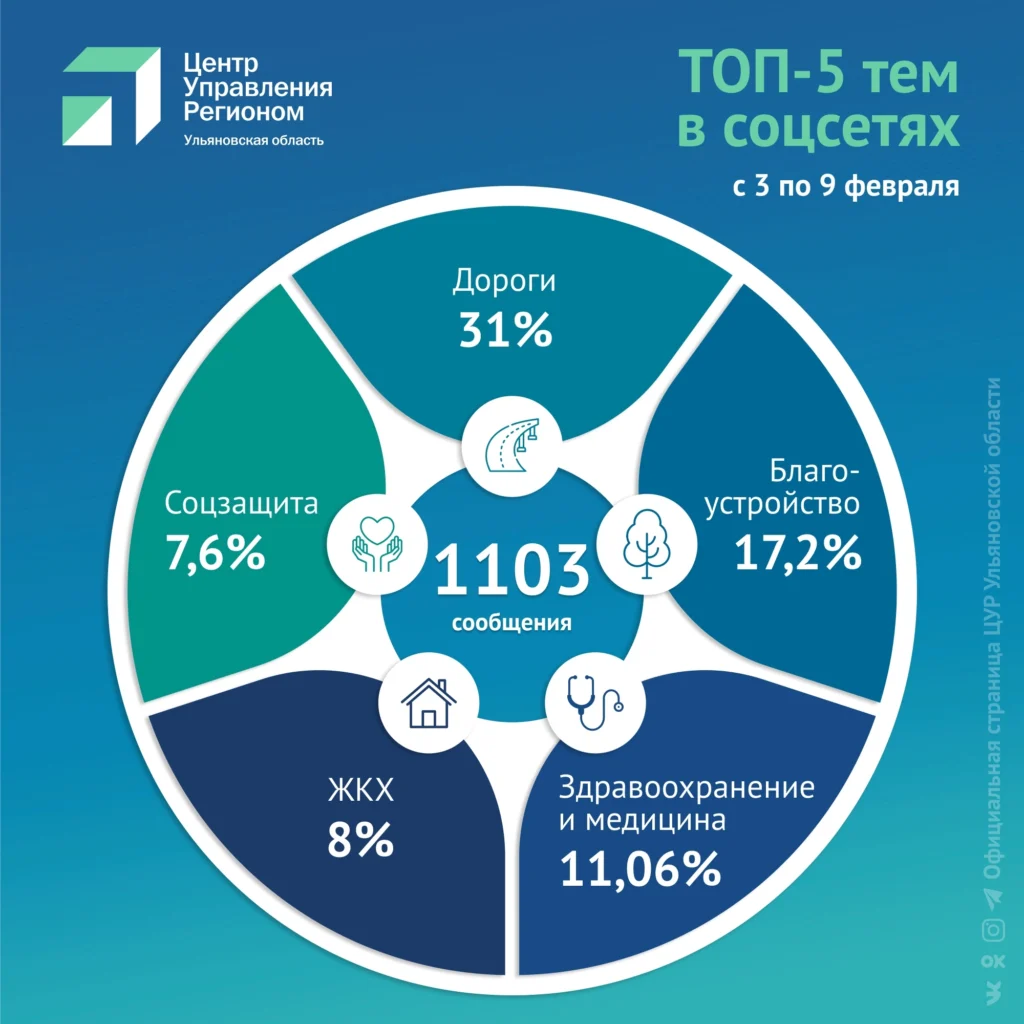 Центр управления регионом Ульяновской области публикует топ-5 обращений жителей в соцсетях с 3 по 9 февраля.