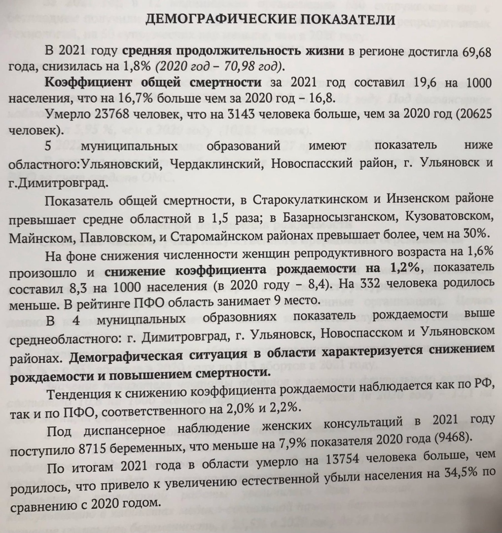 Естественная убыль населения в Ульяновской области по итогам 2021 года составила 13754 человека