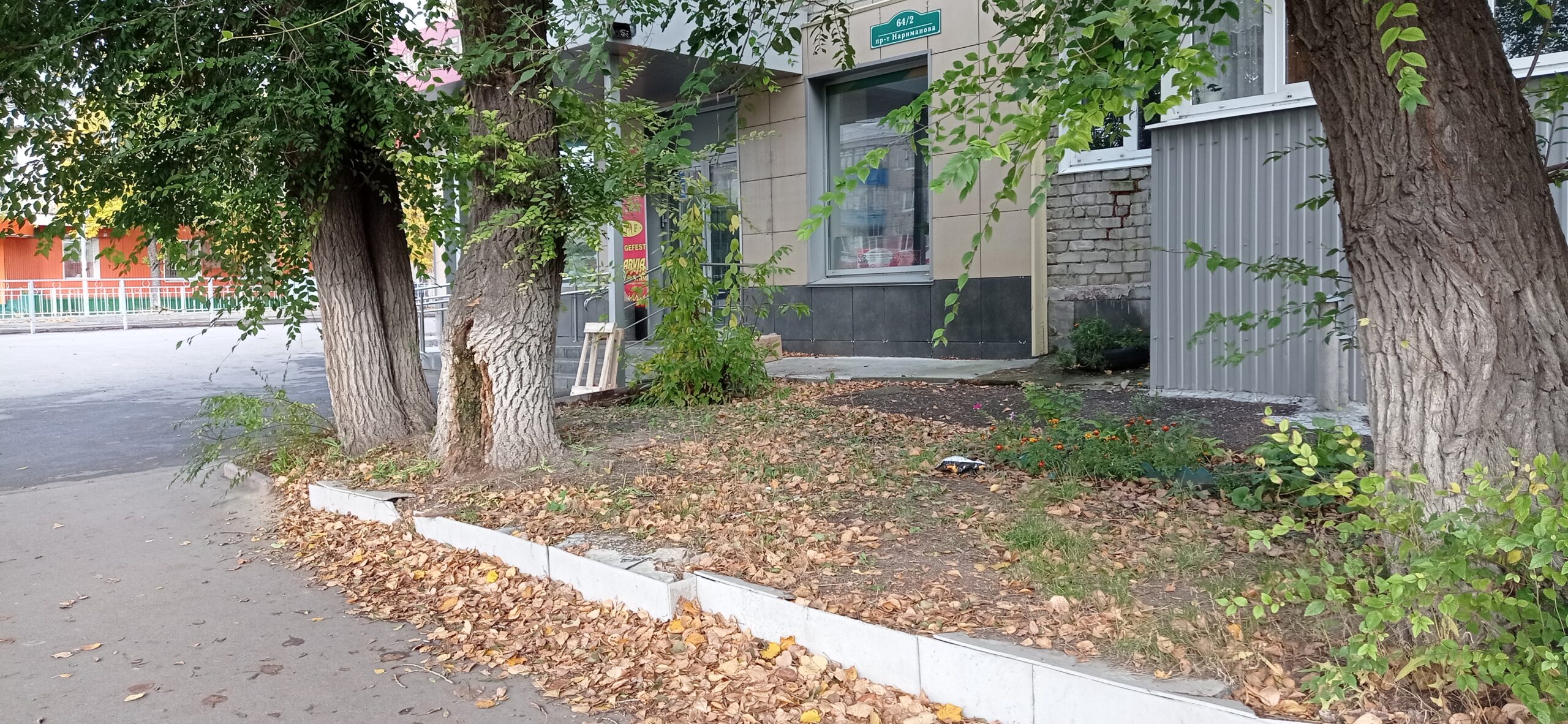 Продолжая гулять по Нариманова, не перестаёшь удивляться: что это такое? Непонятная отделка вдоль тротуара, – видимо, из гипсокартона, – представляет собой ужасное зрелище. Вся переломаная, она говорит не только о состоянии улицы, но и позволяет составить мнение о местной власти и о городе в целом.