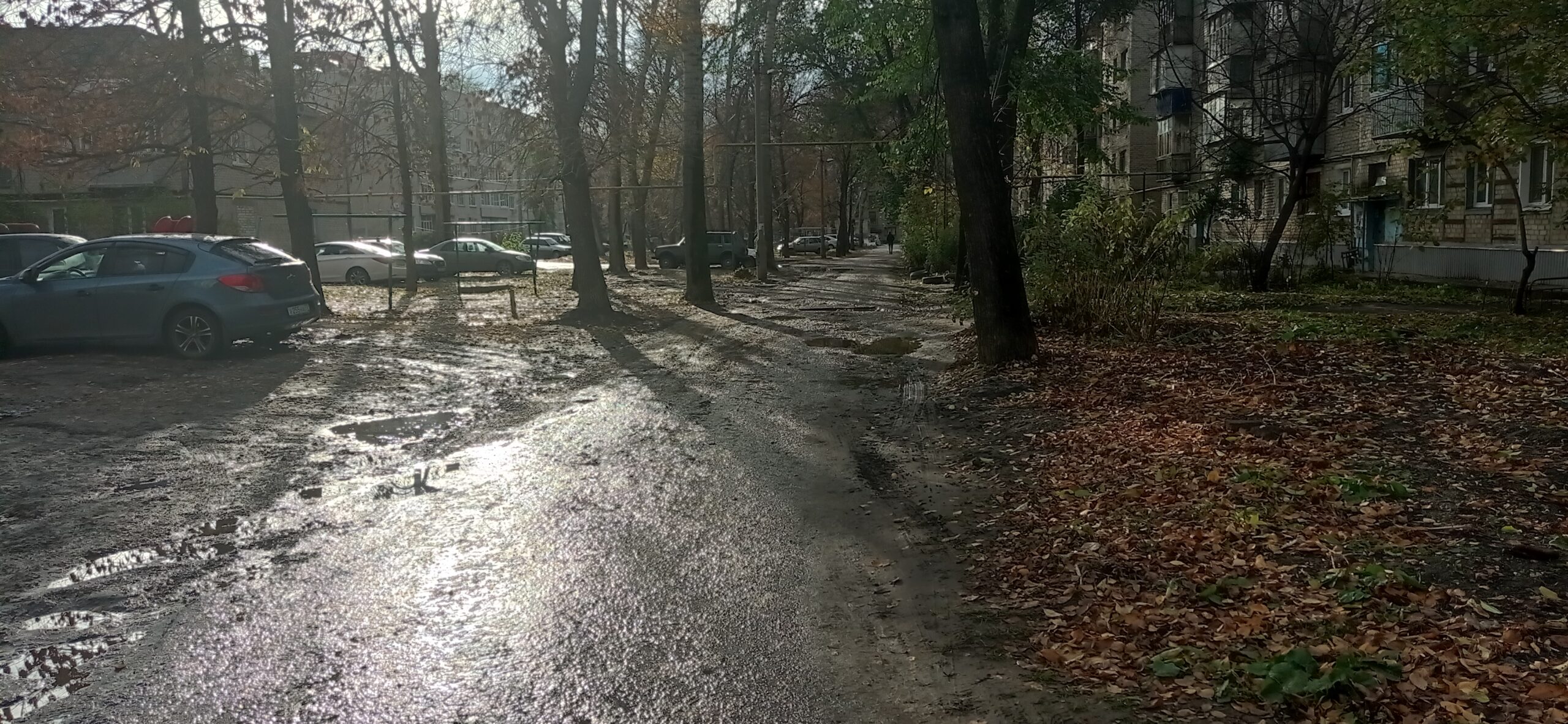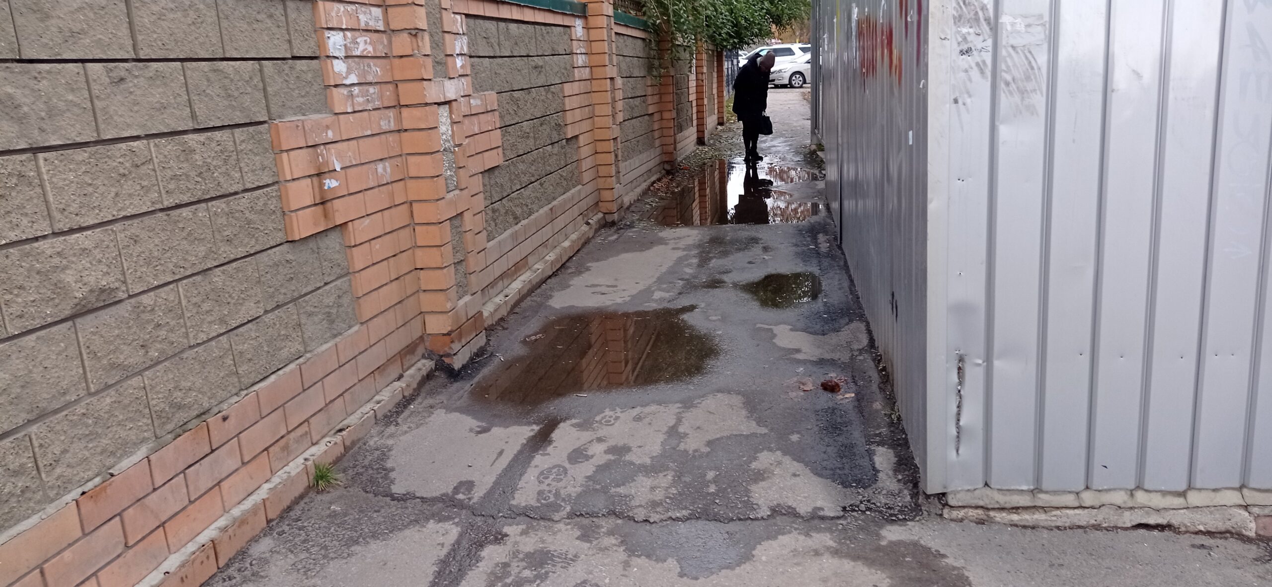 Как мы видим, тротуары не только во дворах, но и с внешней стороны улицы, представляют собой жалкое зрелище. Приходится ходить очень аккуратно, чтобы не соскользнуть в лужи.