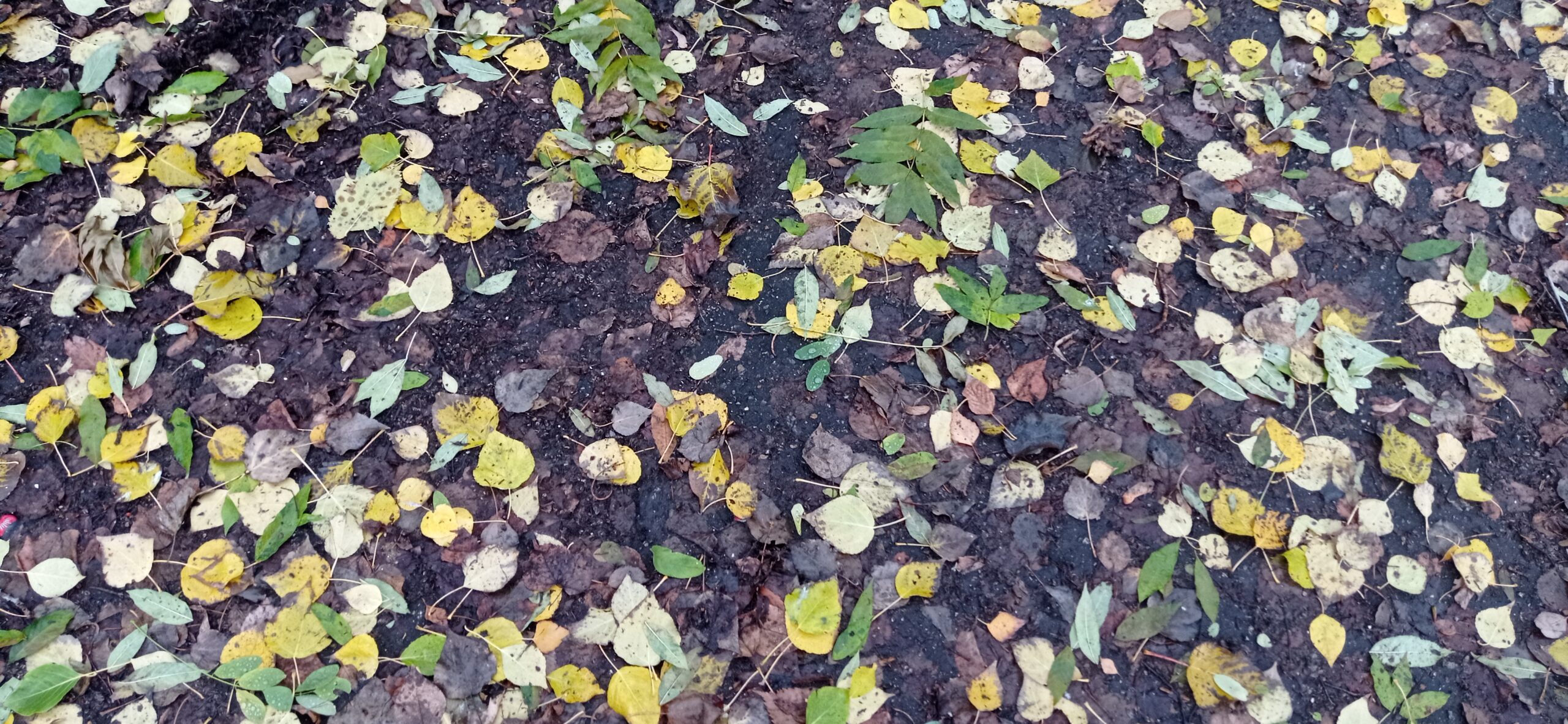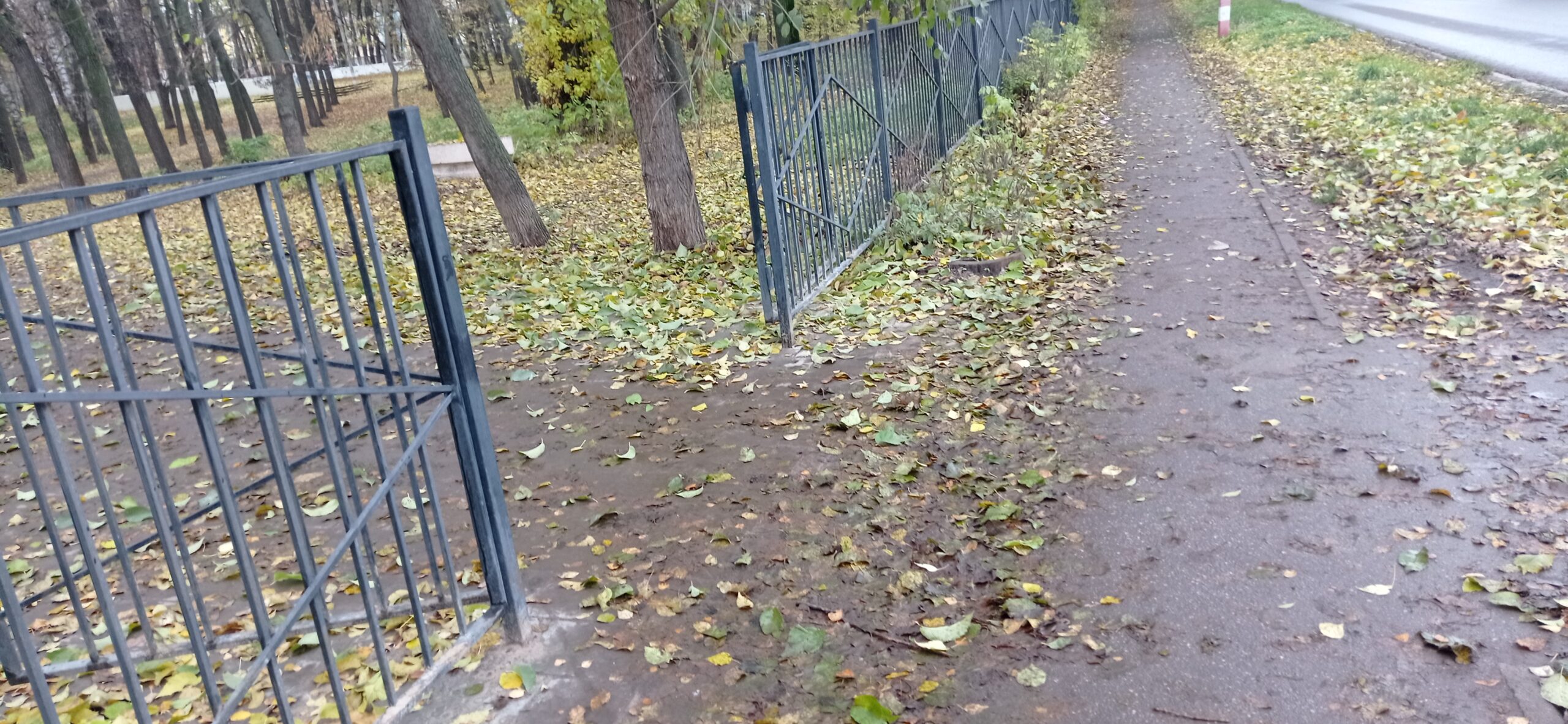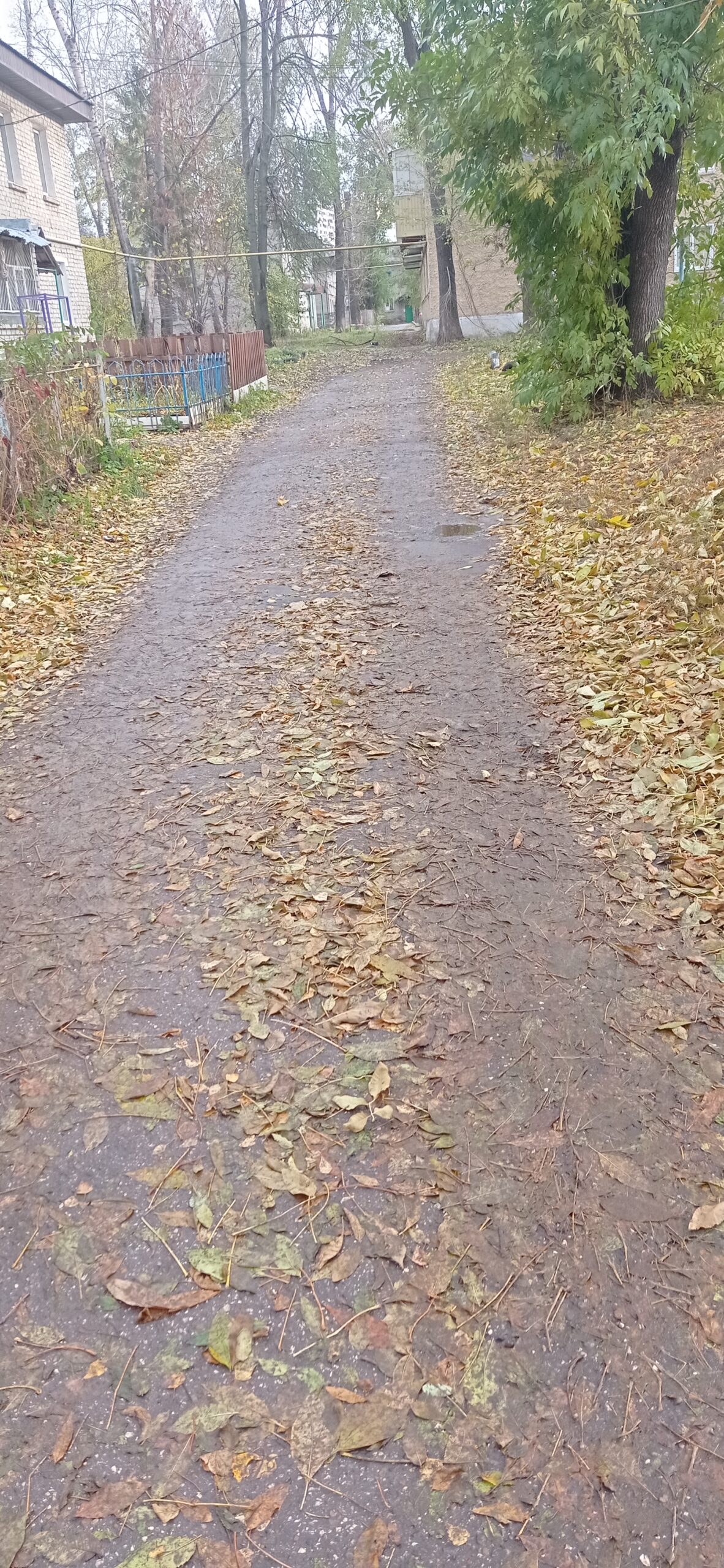 Если пройти дальше, то можно увидеть результат абсолютной бесхозяйственности – листва около Доватора, 22 лежит таким слоем, будто её не убирали никогда.