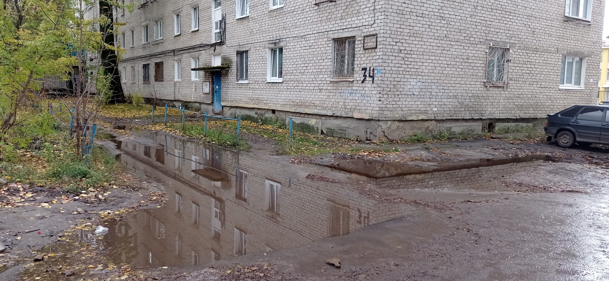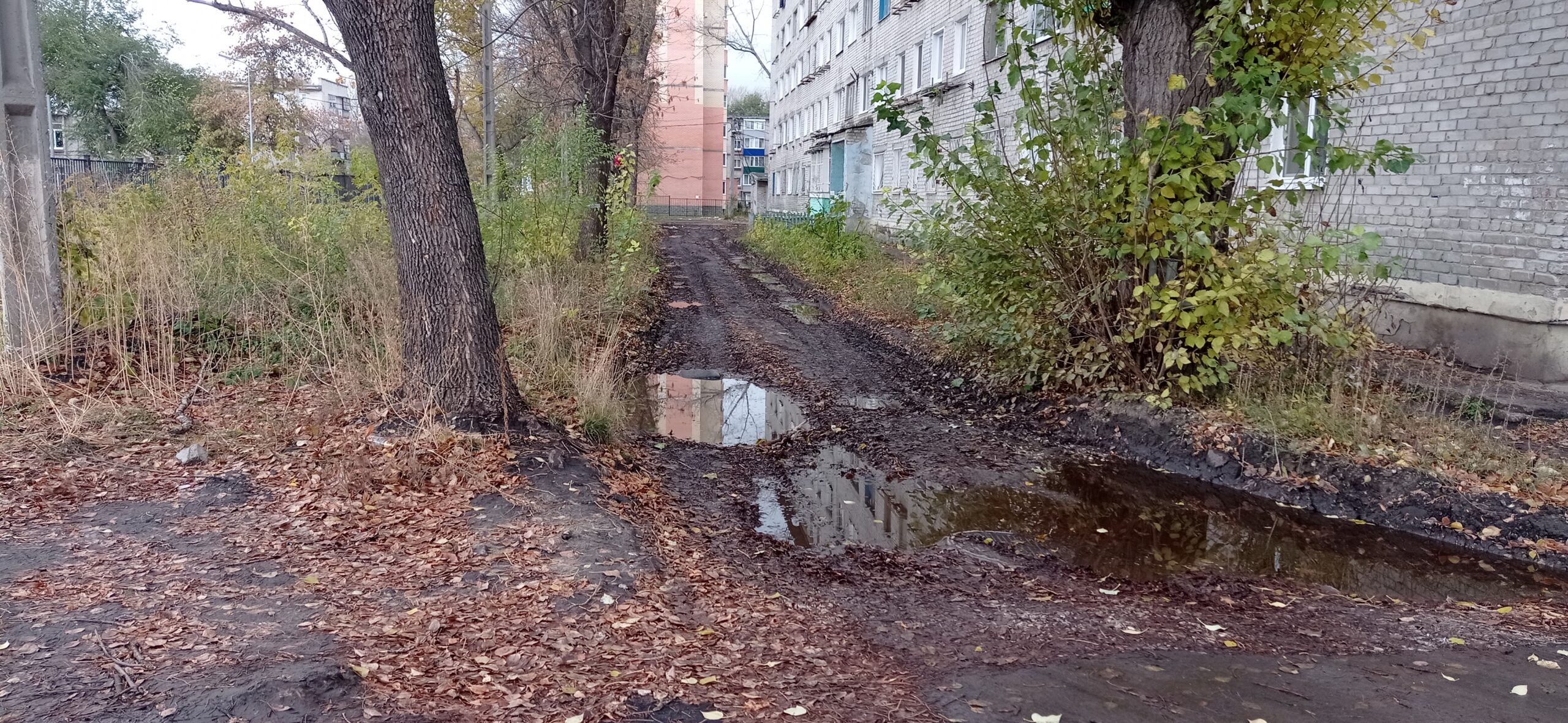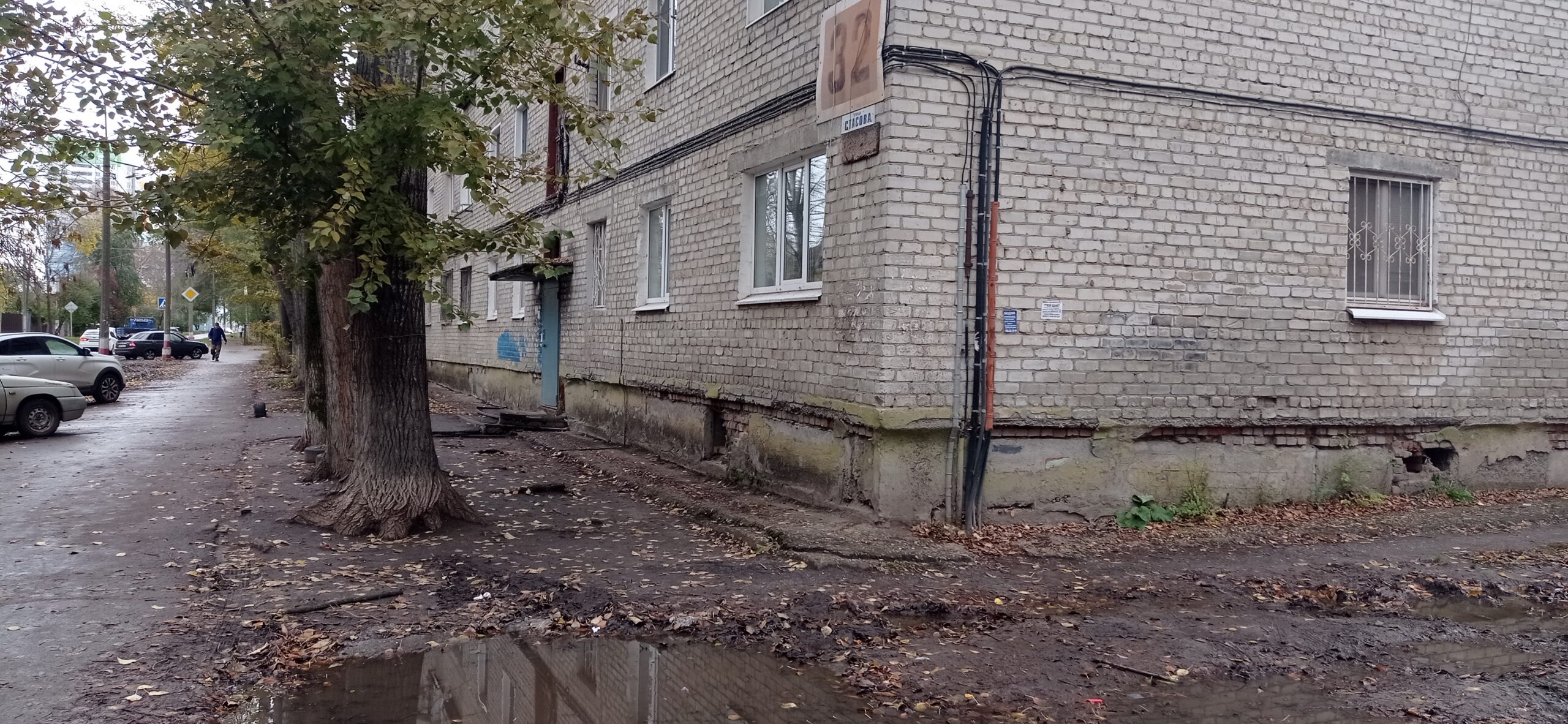 Следующая улица, которую нам довелось «проинспектировать», находится в Заволжском районе. Злополучная улица 9 мая, получившая название в честь Великой победы, представляет собой печальное зрелище. Помимо того, что фасады находятся в полуразрушенном состоянии, а крыши ждут зимы, чтобы обрасти метровыми сосульками, дворы утонули в грзяи.