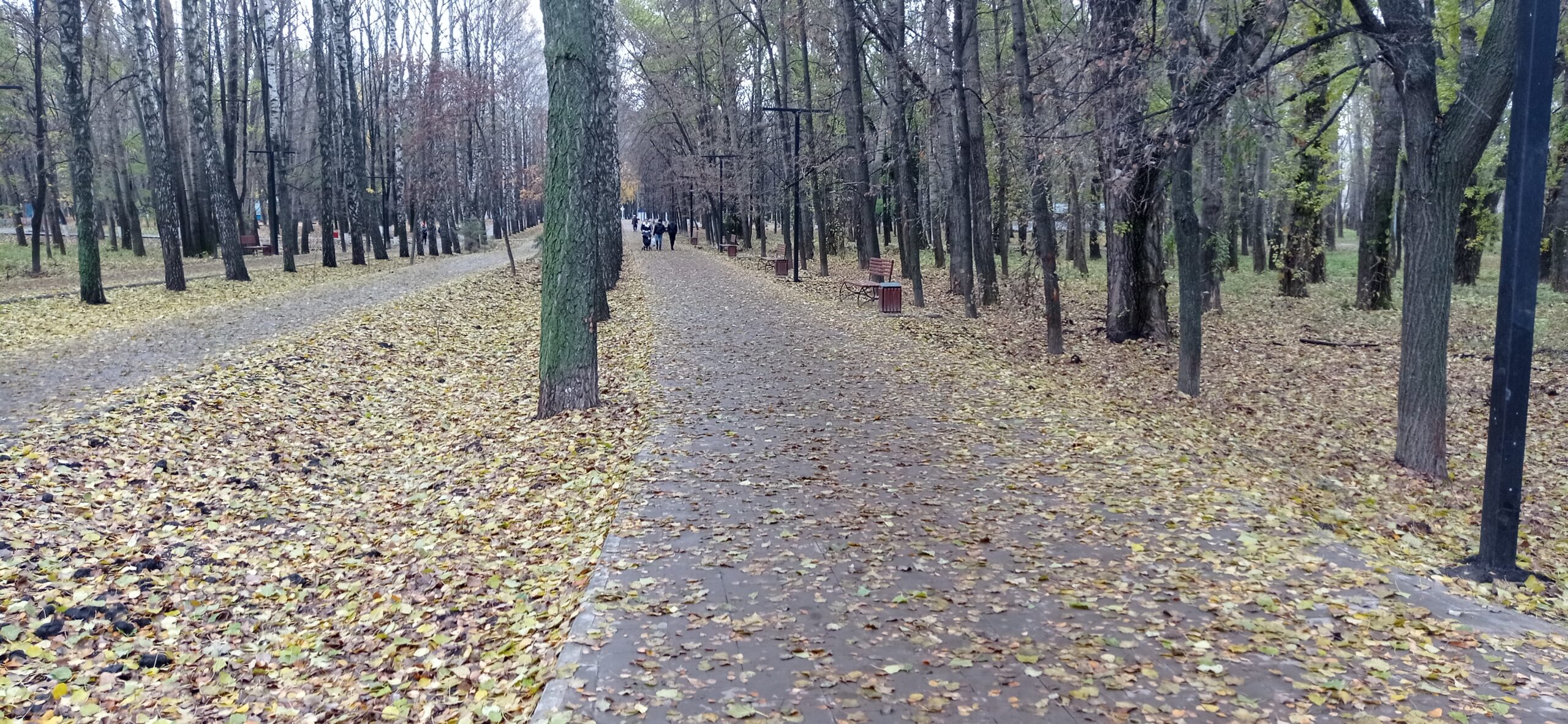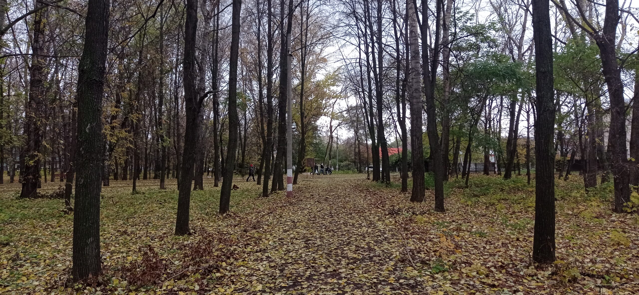 По пути мы заглянули в парк «Молодёжный», который отрицательно удивил. Место для семейного отдыха выглядит неухоженным, листву, кажется, никто никогда не убирал. Естественно, вперемешку с грязью и влагой эти листья превращаются в скользкую кашу.
