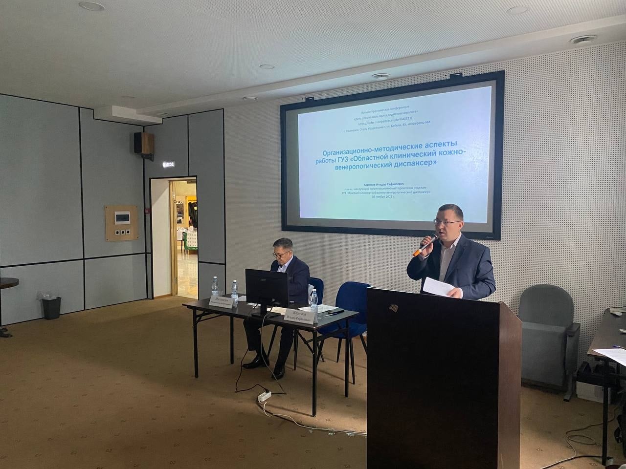 Заведующий организационно-методическим отделом Областного клинического кожно-венерологического диспансера, к.м.н. Ильдар Каримов поделился с присутствующими информацией об организационно-методических аспектах деятельности Областного клинического кожно-венерологический диспансера.