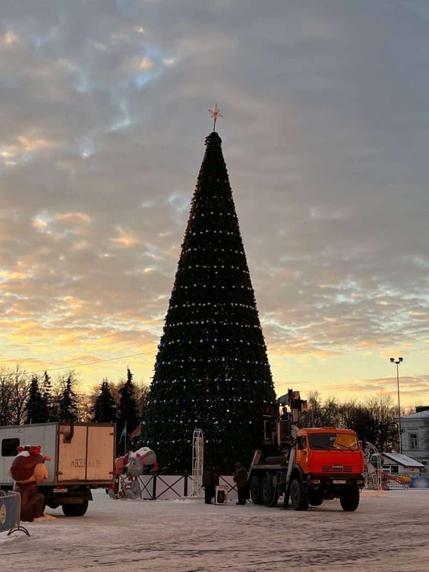 В центре Ульяновска начали убирать новогоднюю елку