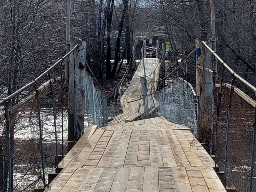 Сегодня, 13 марта, в социальных сетях местными жителями сообщается, что пешеходный мост в Новоспасском районе через реку Сызранку снесло талыми водами.