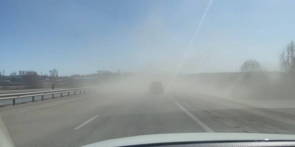 Сегодня, 3 апреля, в сеть попало видео так называемой уборки города. На нем видно, как едет спецтехника, а за ней тянется пыль, которая мешает водителям. Это можно сравнить с песчаной бурей из-за которой вообще ничего не видно.