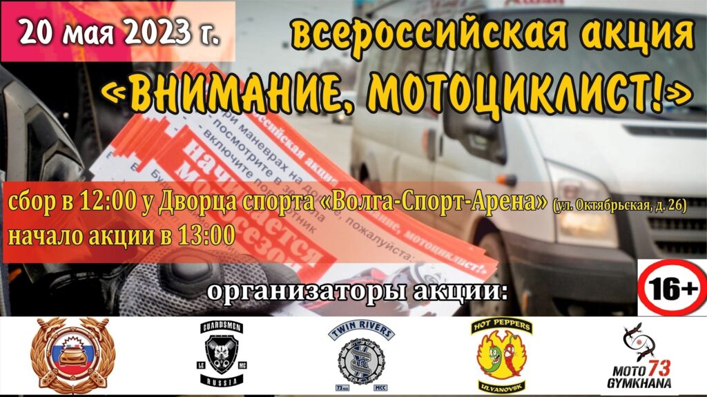 20 мая 2023 года в Ульяновске пройдет акция «Внимание, мотоциклист!». Она состоится в 12:00 у Волги-Спорт-Арена.