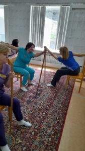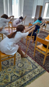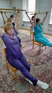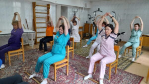 «В свободное от работы время мы, сотрудники, выполняем физические упражнения. В основном физические движения аэробного характера, которые способствуют снижению артериального давления, уровня холестерина, риска развития атеросклероза и массы тела человека, а также улучшают баланс потребления и расхода энергии», — рассказывает инструктор-методист ЛФК УОКЦСВМП имени Е. М. Чучкалова Альфия Евдокимова.