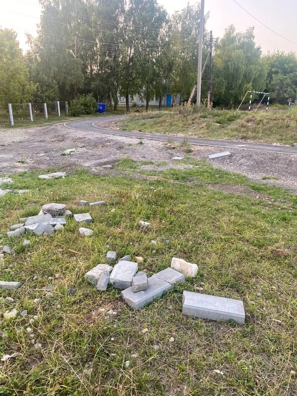 Обломки бордюра валяются на велодорожке в поселке Зелёная Роща