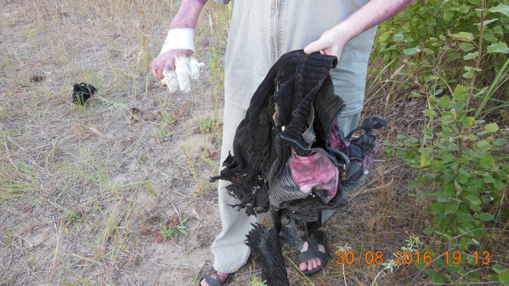 В один момент мужчину очень сильно ударило током. Оказывается, он удочкой задел провода ЛЭП. Произошел взрыв от контакта с проводами и на нем остались только рваные лохмотья от одежды. Он почувствовал, что потерял сознание и потом услышав, как «заново запустилось» его сердце.