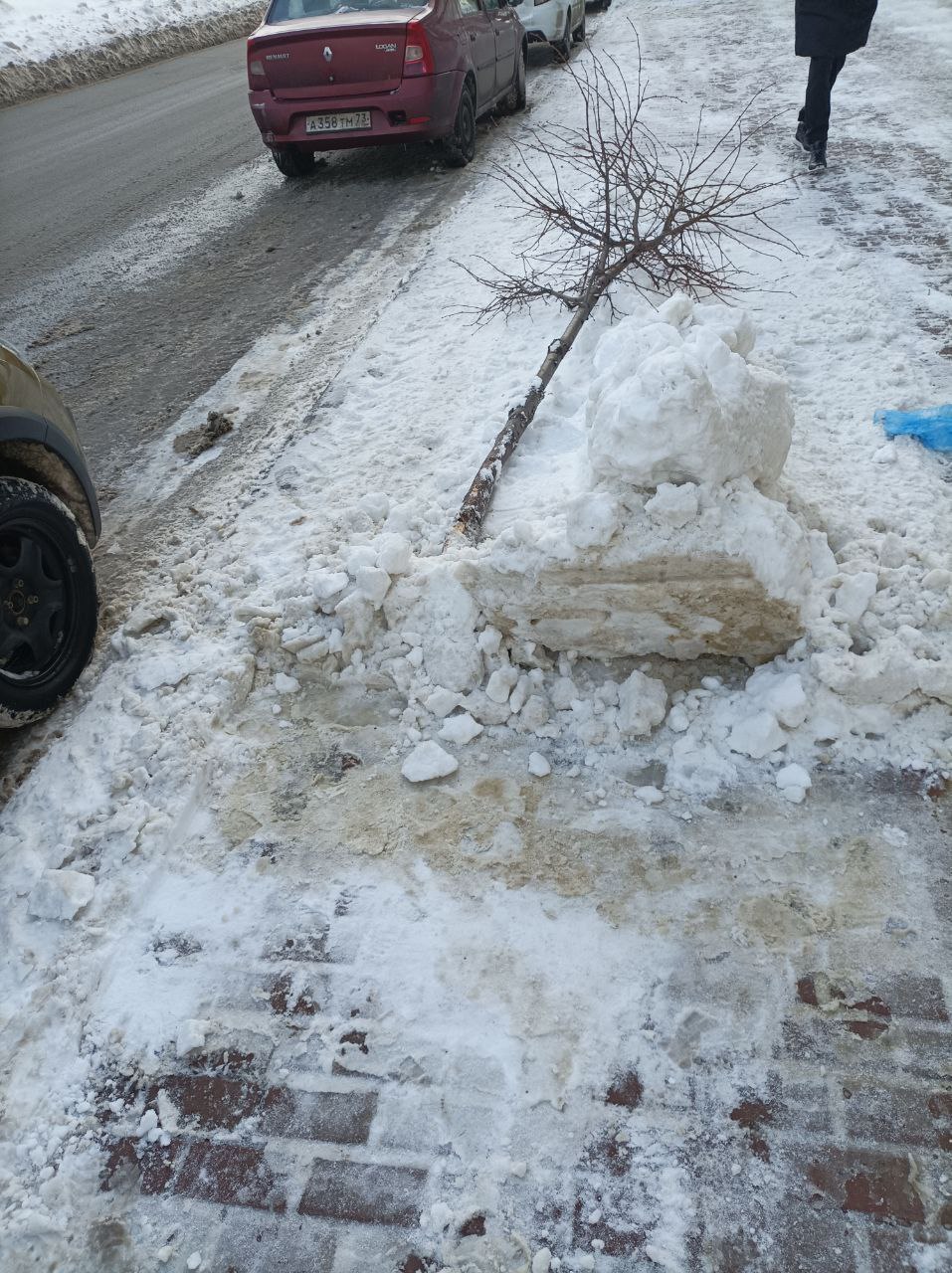 Сегодня, 30 января, в сети жители Ульяновска опубликовали очередную жалобу. По словам очевидцев, на улице Гончарова во время уборки снега вырвали молодые деревья.