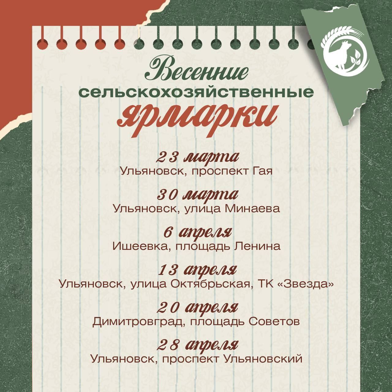 23 марта ульяновцев приглашают на первую сельскохозяйственную ярмарку этой весны, которая пройдет на проспекте Гая. Чиновники обещают, что на товары на этот раз цены будут на 10-15% ниже, чем в магазинах.