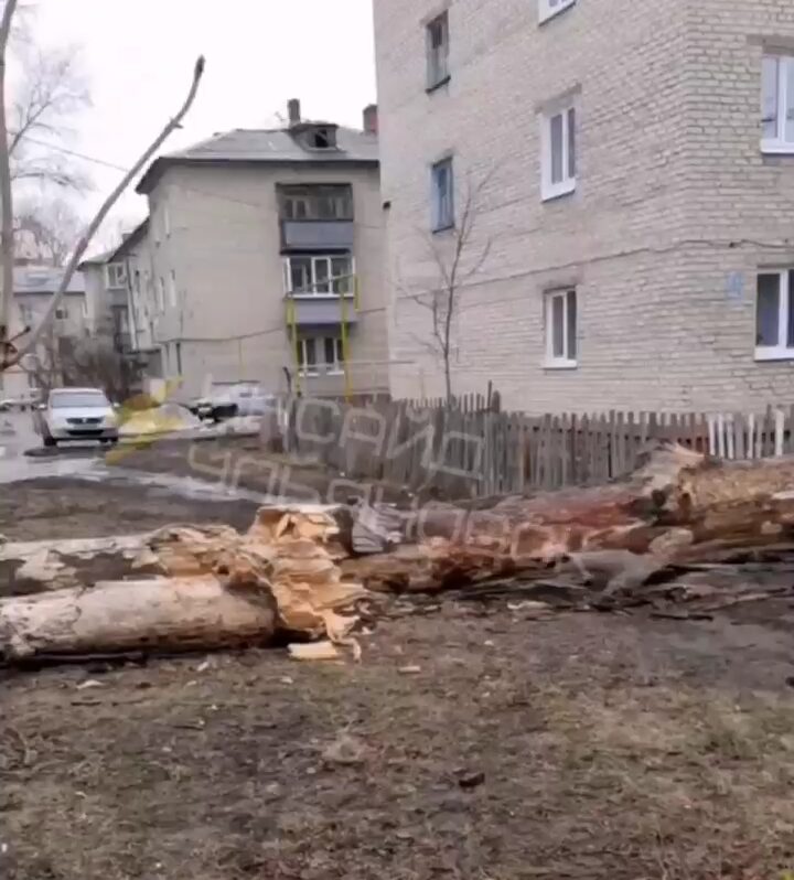 Между домами на Западном бульваре упало аварийное дерево. По словам местных жителей куда только они не обращались. Но никакой реакции от властей не было.