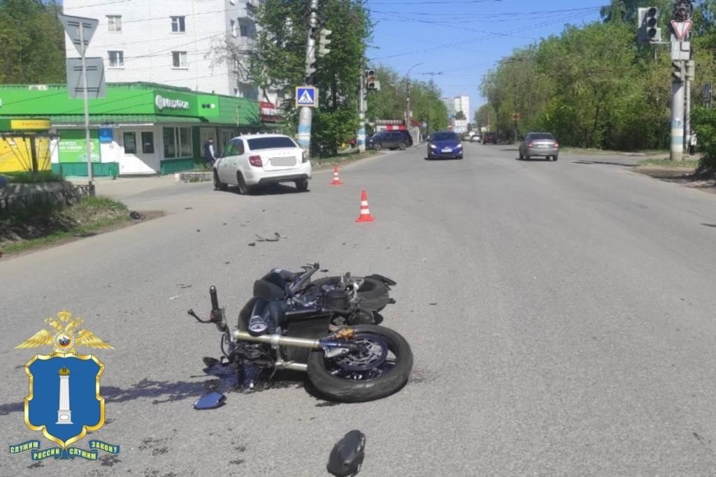 По предварительной информации, 47-летний водитель, управляя мотоциклом «Триумф» (в мотошлеме), выехал на перекресток на запрещающий сигнал светофора и совершил столкновение с осуществляющим поворот налево автомобилем «Лада Гранта» под управлением 26-летнего водителя. В результате ДТП водитель мотоцикла госпитализирован.