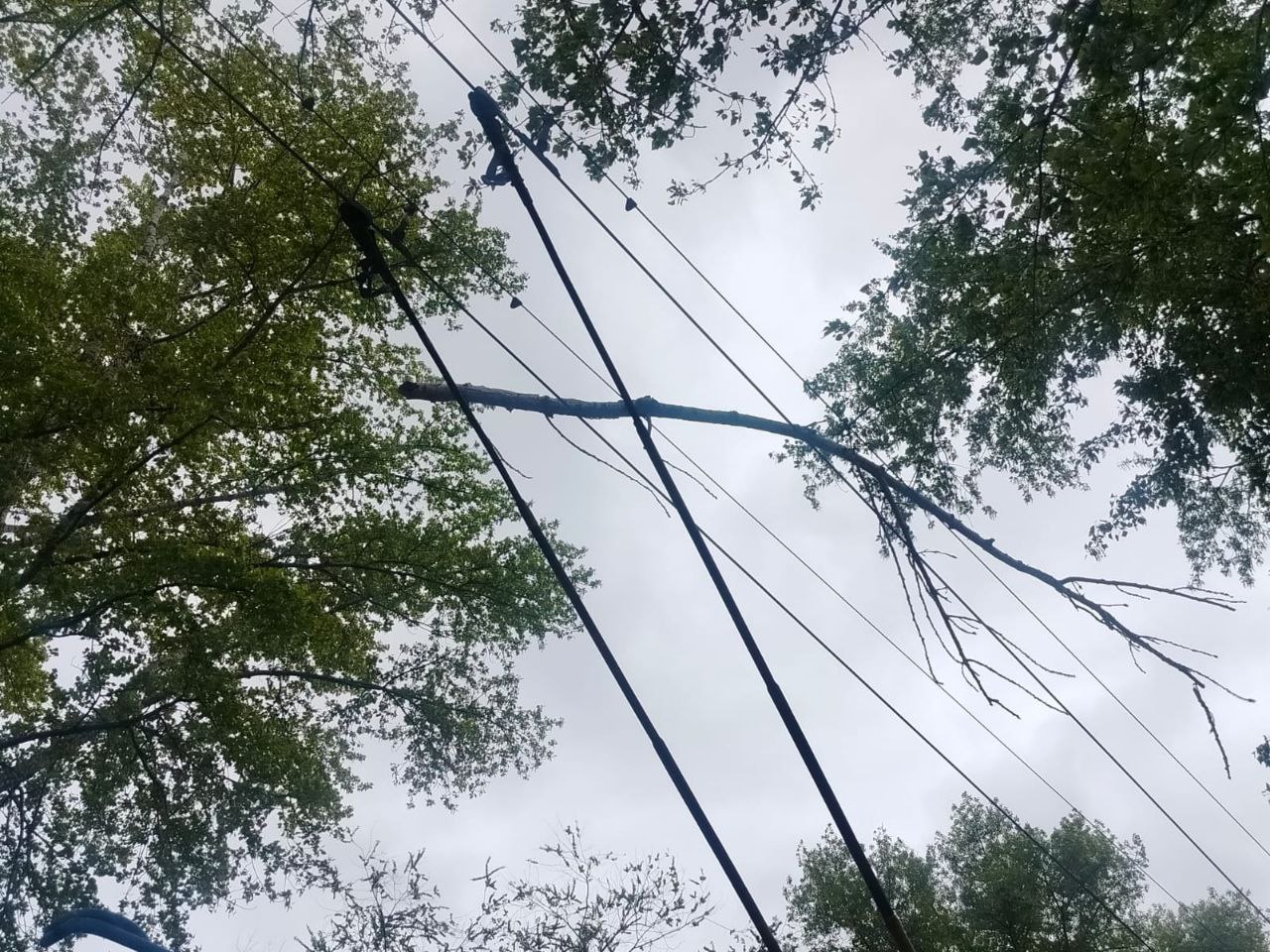 Огромная ветка оборвала провода на проспекте 50 летия ВЛКСМ.