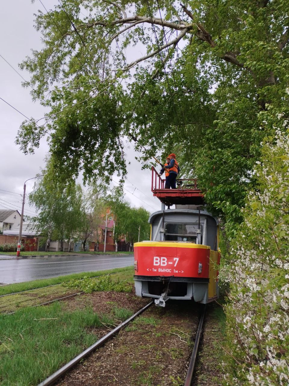 Непогода в этот же день вставляла ветки в колёса трамваем. А точнее обрывала провода. Так, из-за упавшей на контактную сеть ветки было приостановлено движение троллейбусов на Брестской.