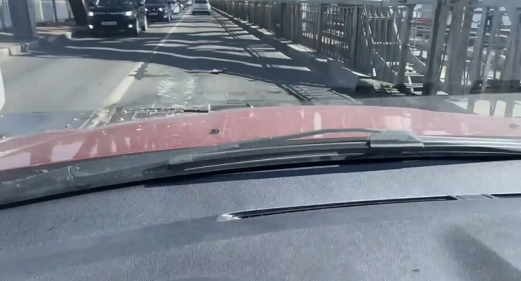 В сети сообщают, что на старом мосту снова отлетел кусок шва. Жители города ждут ремонтных работ и пробок.