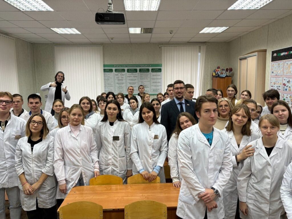 Участники встречи обсудили меры социальной поддержки медицинских сотрудников: Сергей Беззубенков рассказал студентам о том, какие программы существуют для молодых специалистов.