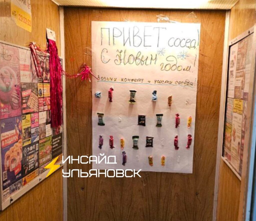 Сегодня, 31 декабря 2024 года, в соцсети появилась фотография лифта в Засвияжском районе. Автор публикации написал: «Еще раз убеждаемся, что в Ульяновске самые добрые люди».