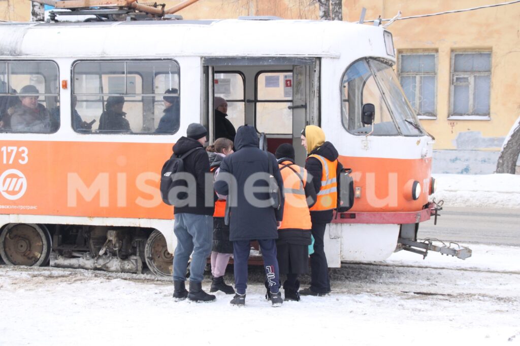 – Один трамвай по маршруту: ул. Радищева – ул. Спасская – ул.Ленина – ул. Железной Дивизии – ул.Минаева далее до остановочного пункта «УКСМ»