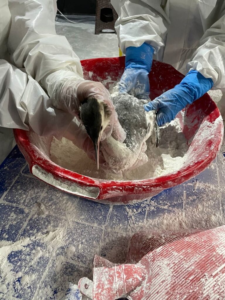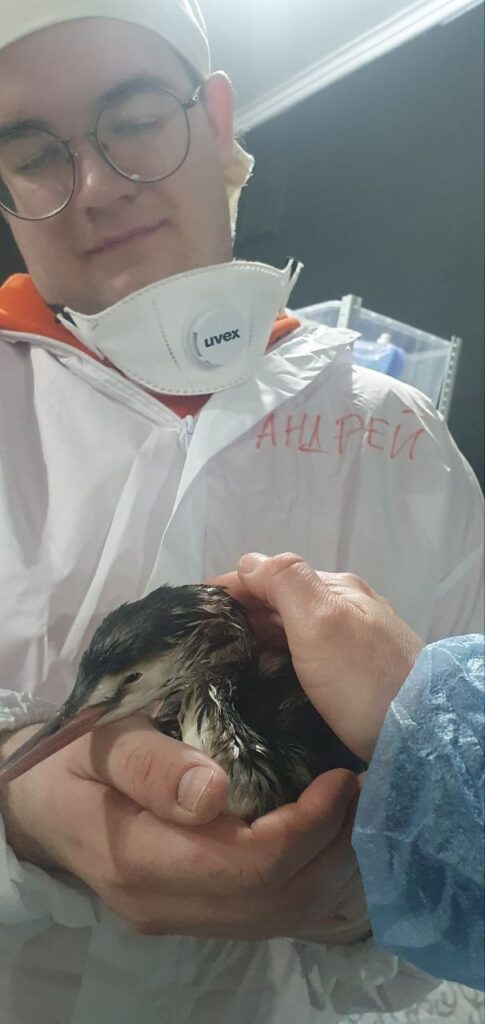 Он сразу же прошел обучение и отмыл свою первую птаху – чомгу (в народе ее зовут «поганкой»). Это вид водных птиц из семейства поганковых. Они чуть меньше кряквы. Как правило, эти пернатые большую часть времени держатся на воде, летают не особо охотно, ныряют в поиске рыбы. В большинстве своем именно этот вид птиц и отмывали волонтеры.