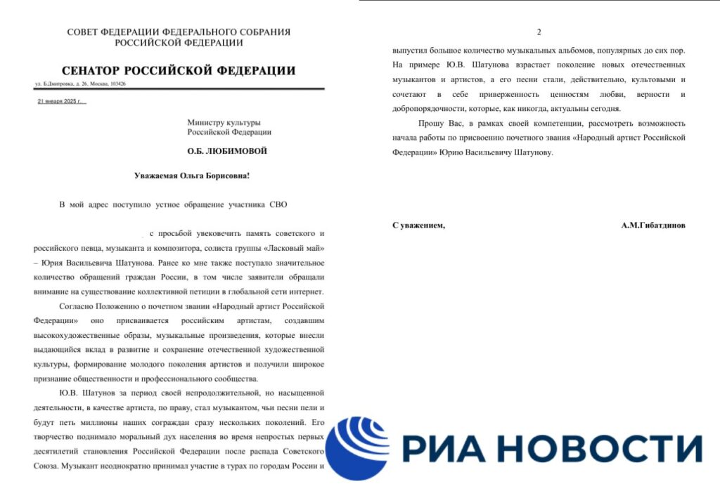 Обращение к министру культуры по этому поводу направил сенатор Айрат Гибатдинов. Политик отметил, что с просьбой увековечить память музыканта к нему обратился участник СВО, поступают обращения и от других граждан России.