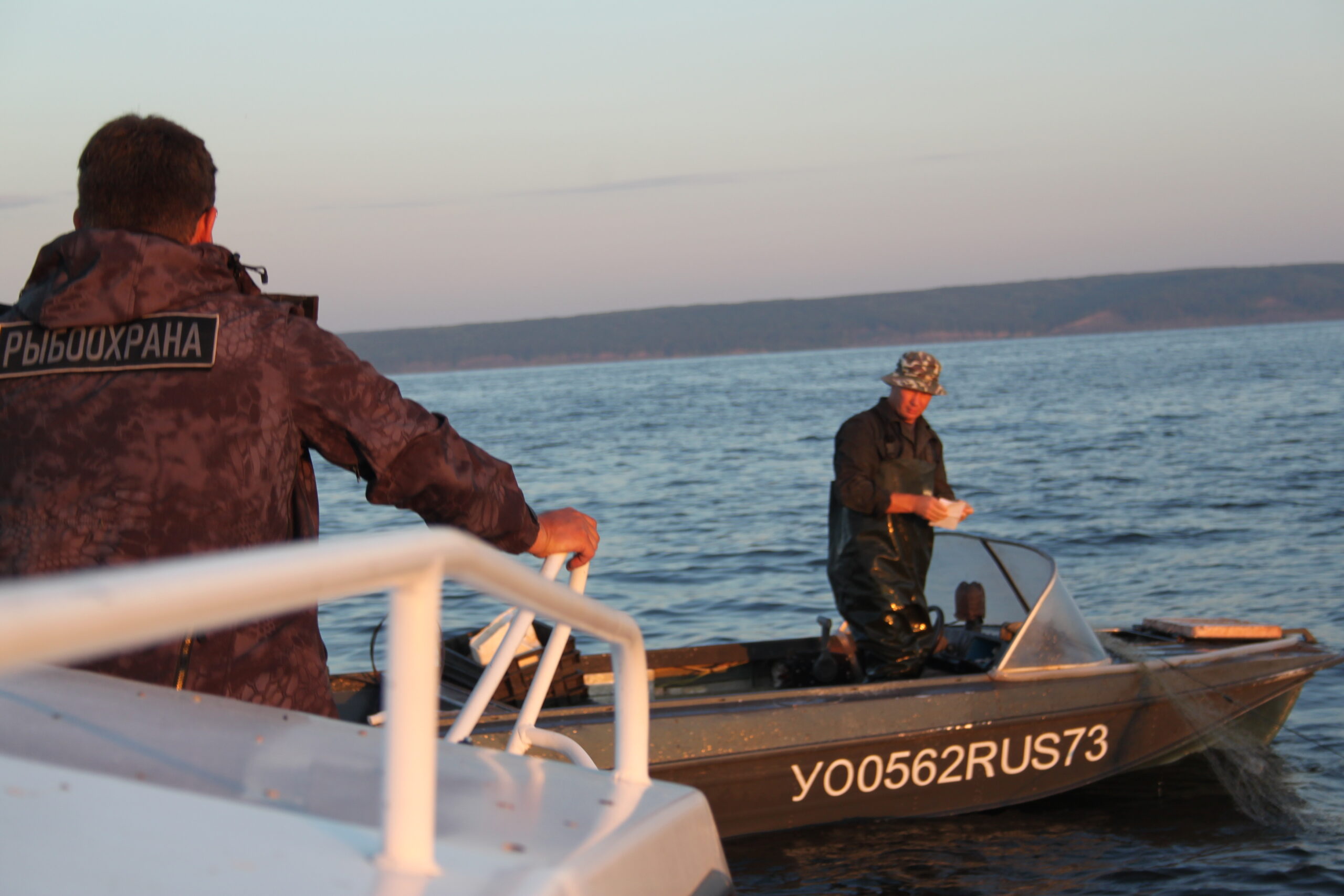 Когда акватория Волги близ Ульяновска была проверена, сотрудники Росгвардии и Рыбнадзора получили координаты, где был обнаружен браконьер. Мы отправились в Старую Майну. Уже прибыв на место, узнали, что сотрудники из областного управления уголовного розыска УМВД проводили рейд, наблюдали за акваторией. Неизвестные установили сети в воде. Готовилось задержание. В этом случае без инспектора и силовой поддержки Росгвардии не обойтись. Инспектор должен составлять протокол и подсчитывать ущерб.