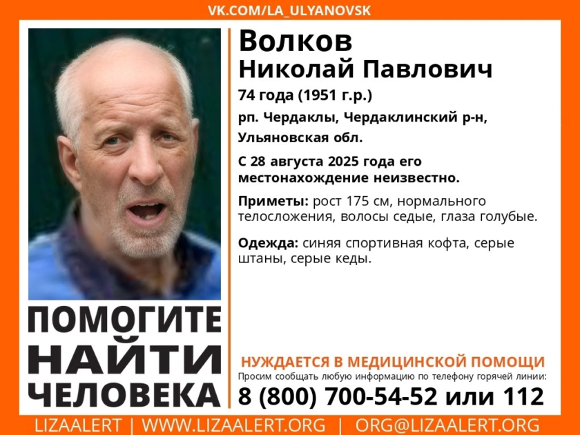 Место пропажи: рп. Чердаклы, Чердаклинский р-н, Ульяновская обл.