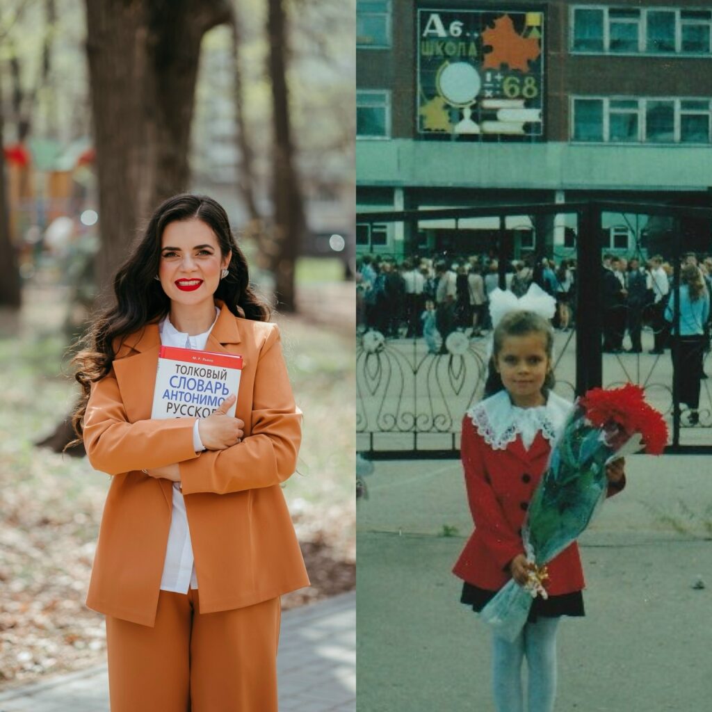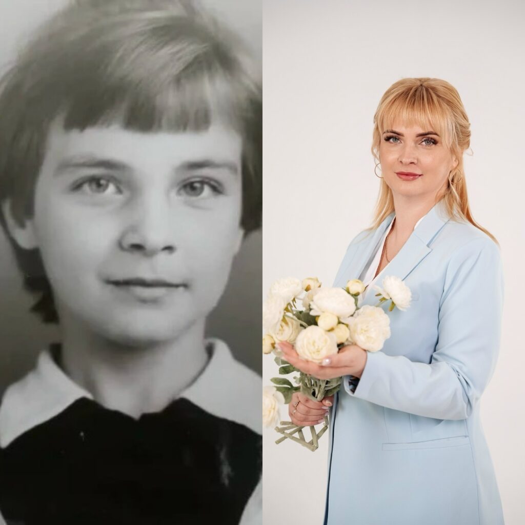 — Пышные банты, яркие георгины, радость в моих глазах и глазах одноклассников мы пришли в первый класс! Беззаботные годы, проведённые в средней школе № 14 Заволжского района, бережно хранятся в моей памяти. Ведь это была пора не только для уроков! Разве можно недооценивать наши ребячьи организации октябрята, пионеры, комсомольцы особые этапы школьной жизни, этапы нашего взросления. Октябрятские «звёздочки», пионерские звенья и отряды, между которыми идёт соревнование по сбору металлолома и макулатуры. Сборы и линейки, звуки горна и барабана. Летние пионерские лагеря с обязательными кострами и красивыми песнями до поздней ночи… — отмечает директор гимназии. — В детстве я любила учить ребятишек. Из листочков шила маленькие тетрадки, в палисаднике ставила лавочку и учила писать маленьких детей палочки-крючочки. Уже тогда я знала о своей будущей профессии. Кроме того, в городе было немного вузов. Поэтому выбор пал на Ульяновский государственный педагогический институт имени И.Н. Ульянова. Так началась уже другая, не менее интересная жизнь.