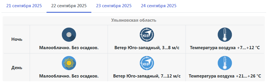 По прогнозу Гидрометцентра, в начале следующей рабочей недели территория Ульяновской области по-прежнему будет находиться под влиянием антициклона, погода ожидается преимущественно без осадков, ветер юго-западный, температурный режим превысит климатическую норму.