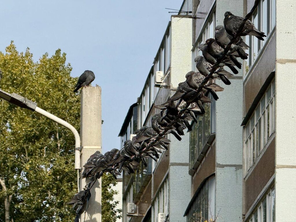 Фото дня: ульяновские голуби облюбовали высоковольтные провода
