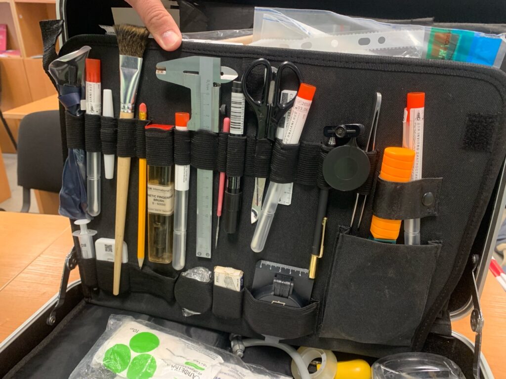 — Это правда. За мной закреплена передвижная криминалистическая лаборатория. Каждый раз ты едешь в неизвестность, поэтому непонятно, что может пригодиться. Всегда с собой чемодан с источником криминалистического света, есть чемодан с металлоискателем, у каждого следователя есть следственный чемодан, где хранятся кисточки, слепки, ножи, верёвки, топоры, ломы и так далее. Представьте: половица в крови, её нужно изъять. Для этого понадобится ножовка. Если обои в крови, то их тоже надо вырезать. По этой причине у нас много разных инструментов.