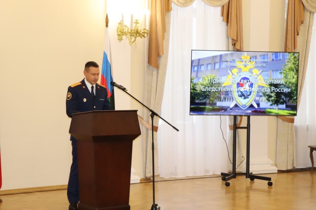 Сегодня по поручению руководителя следственного управления СК России по Ульяновской области генерал-майора юстиции Михайлова Сергея Юрьевича в торжественном зале Дворца книги присягу новых учеников кадетских классов принял заместитель руководителя управления Малафеев А.Е.