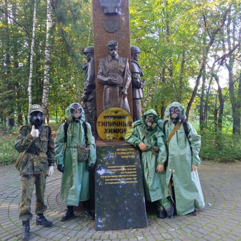 В этот же день, но уже в Москве группа подростков гуляла в противогазах и защитных комплектах. Молодёжь фотографировалась с посетителями парка и сделала пару снимков у памятника ликвидаторам аварии на Чернобыльской АЭС.