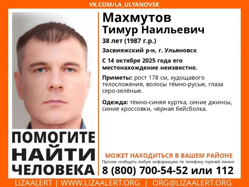 Место пропажи: Засвияжский р-н, г. Ульяновск.
