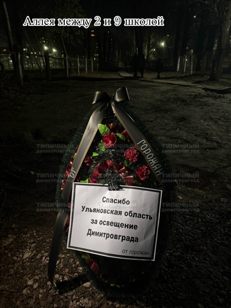 На венках было написано: «Спасибо, Ульяновская область, за освещение Димитровграда (от горожан)».