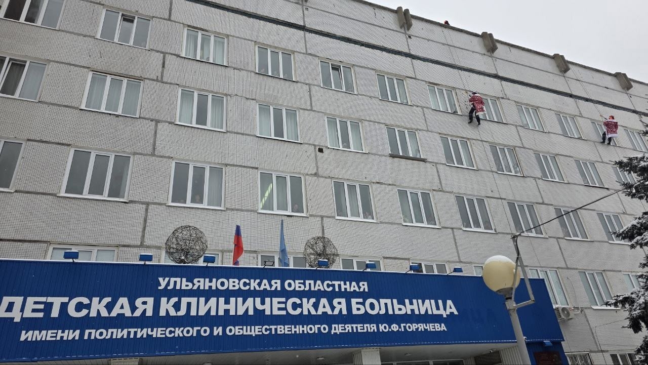 В преддверии Нового года в Ульяновской областной детской клинической больнице имени Ю. Ф. Горячева прошла добрая и зрелищная акция — «Новогодний десант». Герои праздника — Деды Морозы и Снегурочка из Главного управления МЧС России по Ульяновской области и благотворительный фонд «Мелодия добрых дел»