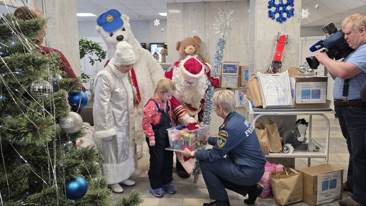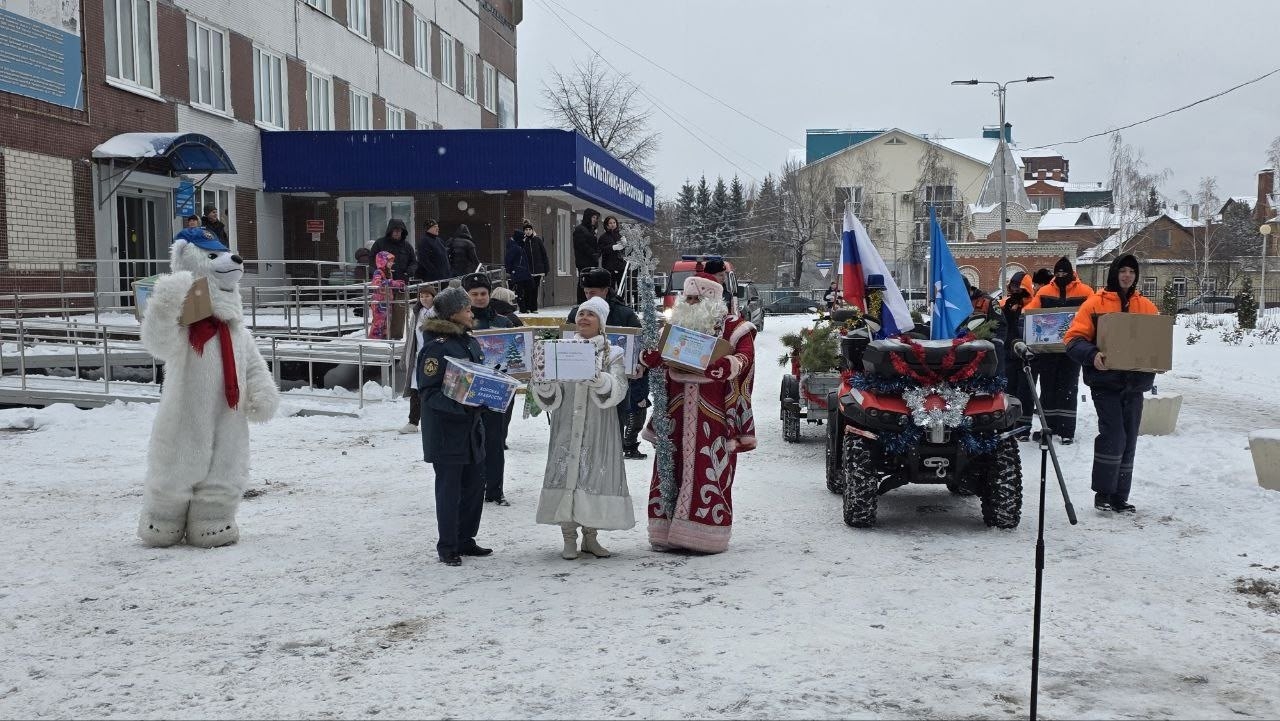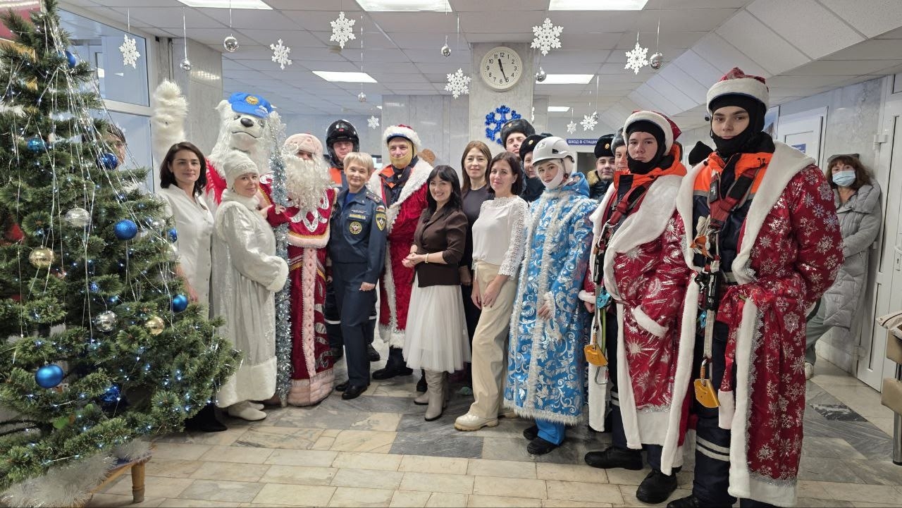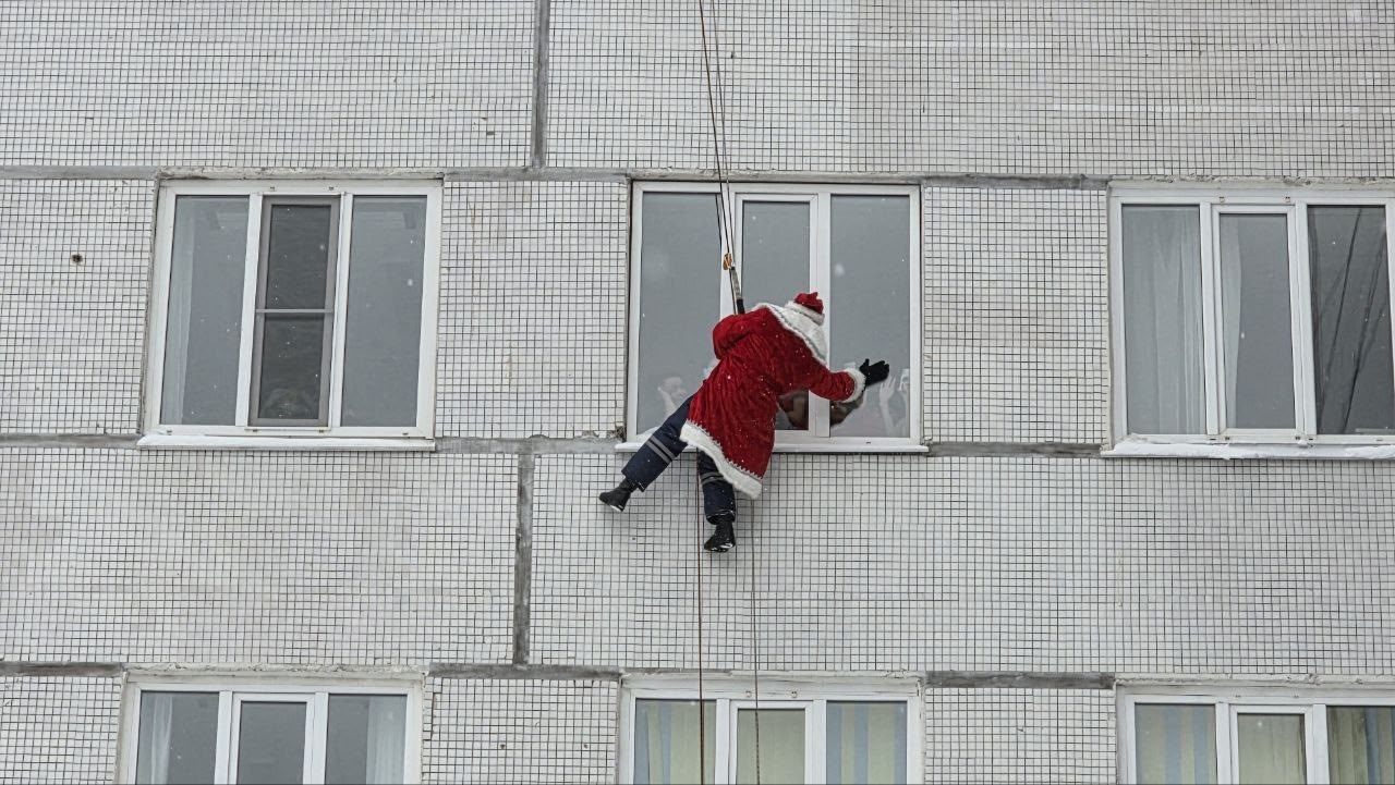 Деды Морозы и Снегурочка приехали к ребятам на спецтехнике МЧС, превратив пожарные машины и квадроциклы в сверкающие «новогодние сани». Вместе с ними волшебное настроение привезла целая команда сказочных персонажей — с гирляндами, мишурой и мешками подарков. Смелые Деды Морозы устроили настоящее шоу: спустились с крыши по канатам прямо к окнам палат, приветствуя детей, которые восторженно махали руками и звали гостей в гости.