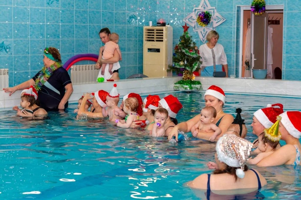 В преддверии Нового года специалисты учреждения организовали водное торжество для детей от 5 месяцев до 1 года и их родителей. Мамы нарядились в купальники и новогодние колпаки, чтобы погрузиться в праздник вместе с малышами. Под чутким руководством инструктора по грудничковому плаванию Светланы Петуховой участники соревновались в весёлых заплывах и выполняли игровые задания. Каждый ребёнок унёс с собой подарок и искреннее поздравление с Новым годом.