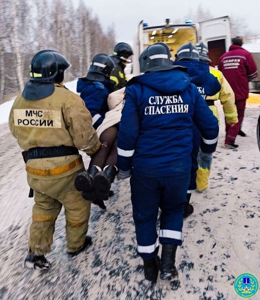 Одного из пострадавших пришлось деблокировать из салона. Спасатели совместно с личным составом пожарно-спасательной части на жестких носилках транспортировали его в автомобиль скорой помощи.
