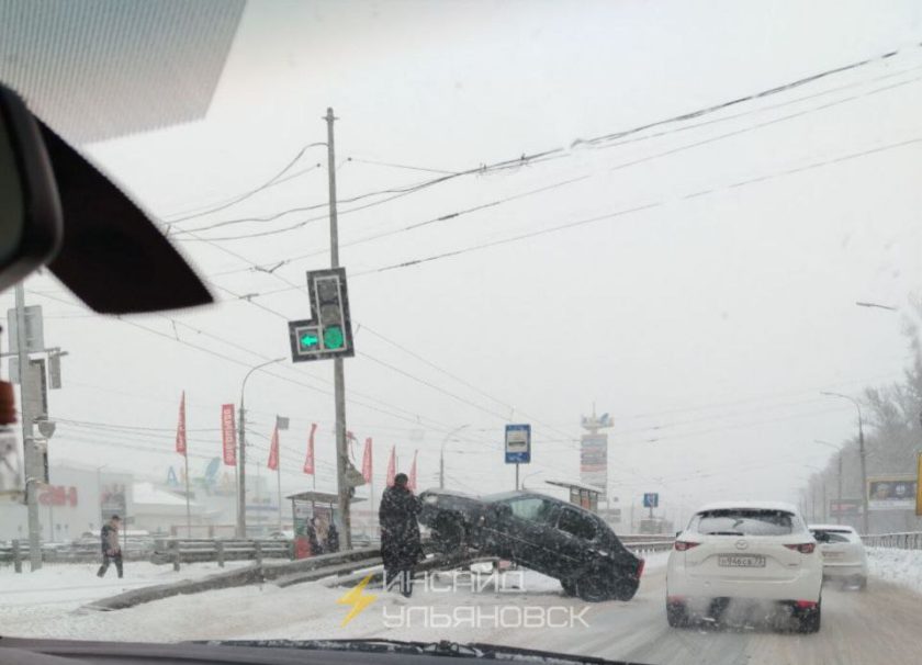 0Легковушка «запрыгнула» на отбойник в Засвияжском районе: фото -
