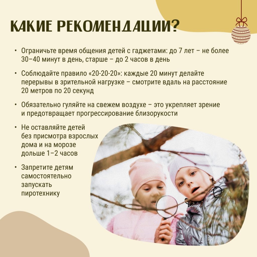 Новогодние каникулы — время отдыха, но для глаз детей это часто дополнительная нагрузка. Долгие игры в гаджеты, просмотр мультфильмов и нарушение режима могут привести к усталости и снижению зрения. Простые и понятные советы помогут сохранить здоровье глаз и хорошее самочувствие ребёнка.