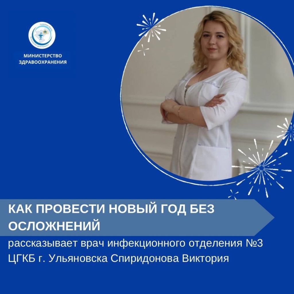 Врач инфекционного отделения №3 Центральной городской клинической больницы Ульяновска Виктория Спиридонова предупредила об основных рисках новогодних застолий и дала советы по их предотвращению.