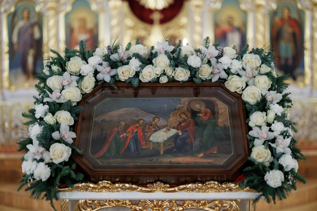 Всех гостей собора, и особенно детей, порадовал традиционный Рождественский вертеп, установленный у храма. 6-7 января в вертепе у собора находятся животные — ослики и овечки. Вертеп — это изображение Вифлеемской пещеры с фигурами Богомладенца в яслях, святого праведного семейства и поклоняющихся Родившемуся Спасителю волхвов или пастухов. Частью иконографии Рождества стали и домашние животные, которые, по преданию, согревали Младенца своим дыханием.