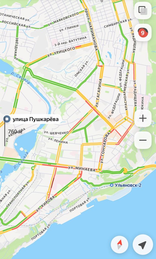 Сегодня, 12 января, в первый рабочий день в Ульяновске наблюдаются 9-балльные пробки. Некоторые ульяновцы жалуются, что на дороге снежная «каша», что затрудняет движение.
