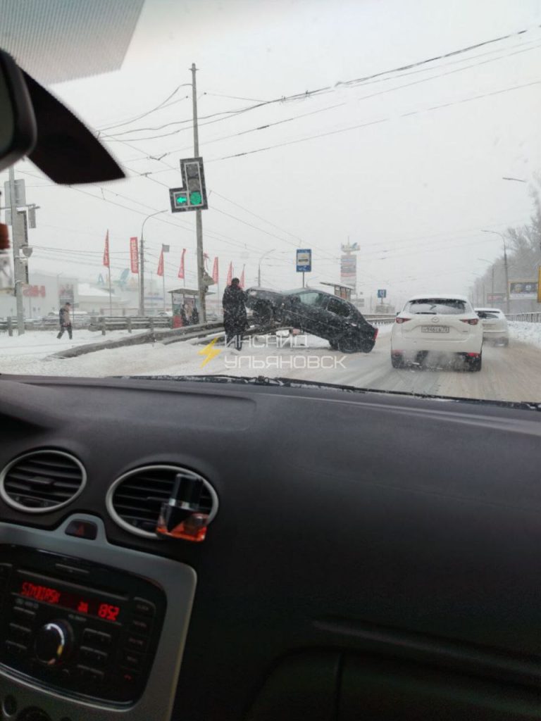 5 января перед Минаевским мостом в Засвияжском районе Ульяновска, на перекрёстке возле торгового центра «Аквамолл»легковой автомобиль врезался в отбойник.