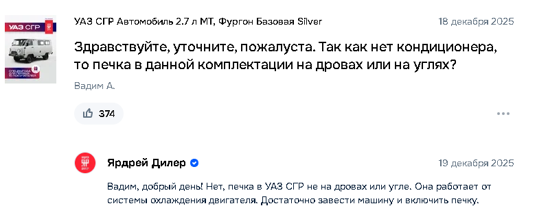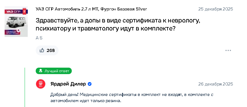 Дилеры также с юмором относятся к подобным вопросам и стараются отвечать всем. А подобных вопросов, кстати, уже более 500 только в одной карточке товара.